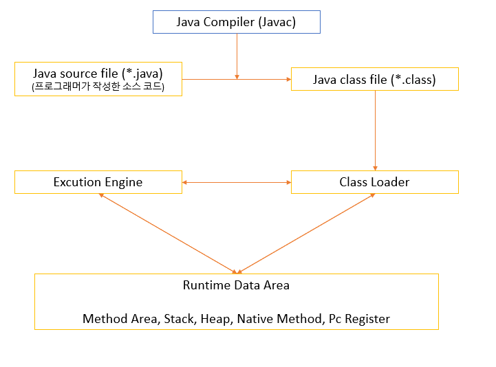 실행이 되기 시작하면 우선 javac가 프로그래머가 작성한 .java file을 .class file로 변환해 준다.