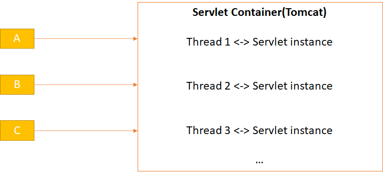 어떠한 요청(Request)이 들어오면, 기존에 생성되어있는 thread가 없거나, thread를 추가할 수 있으면 새로운 Servlet instance를 생성해준다. 하나의 Request와 하나의 Servlet instance는 1:1로 매핑된다고 생각하면 된다.